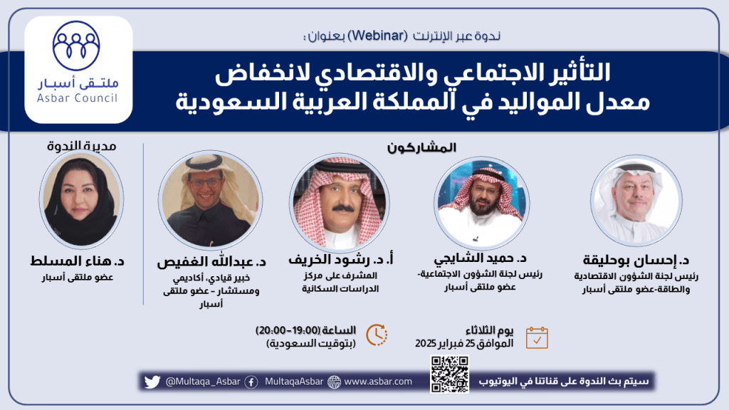 ملتقى أسبار ينظم ندوة “التأثير الاجتماعي والاقتصادي لانخفاض معدل المواليد في المملكة العربية السعودية”